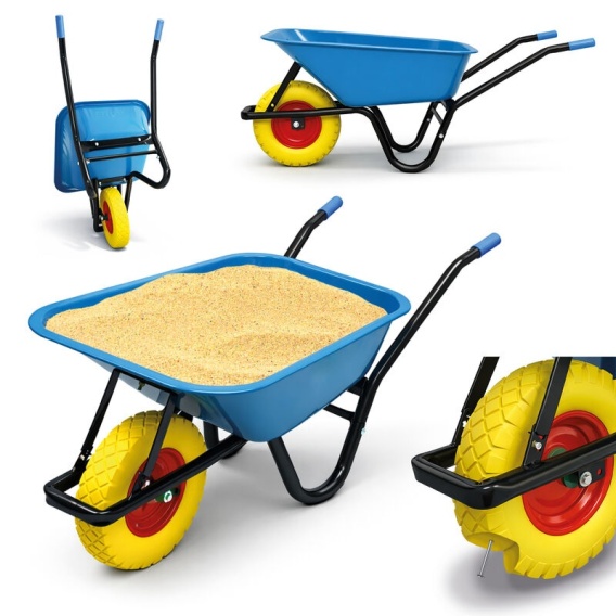 Taczka ogrodowa niebieska z żółtym kołem PU do 250kg 100l